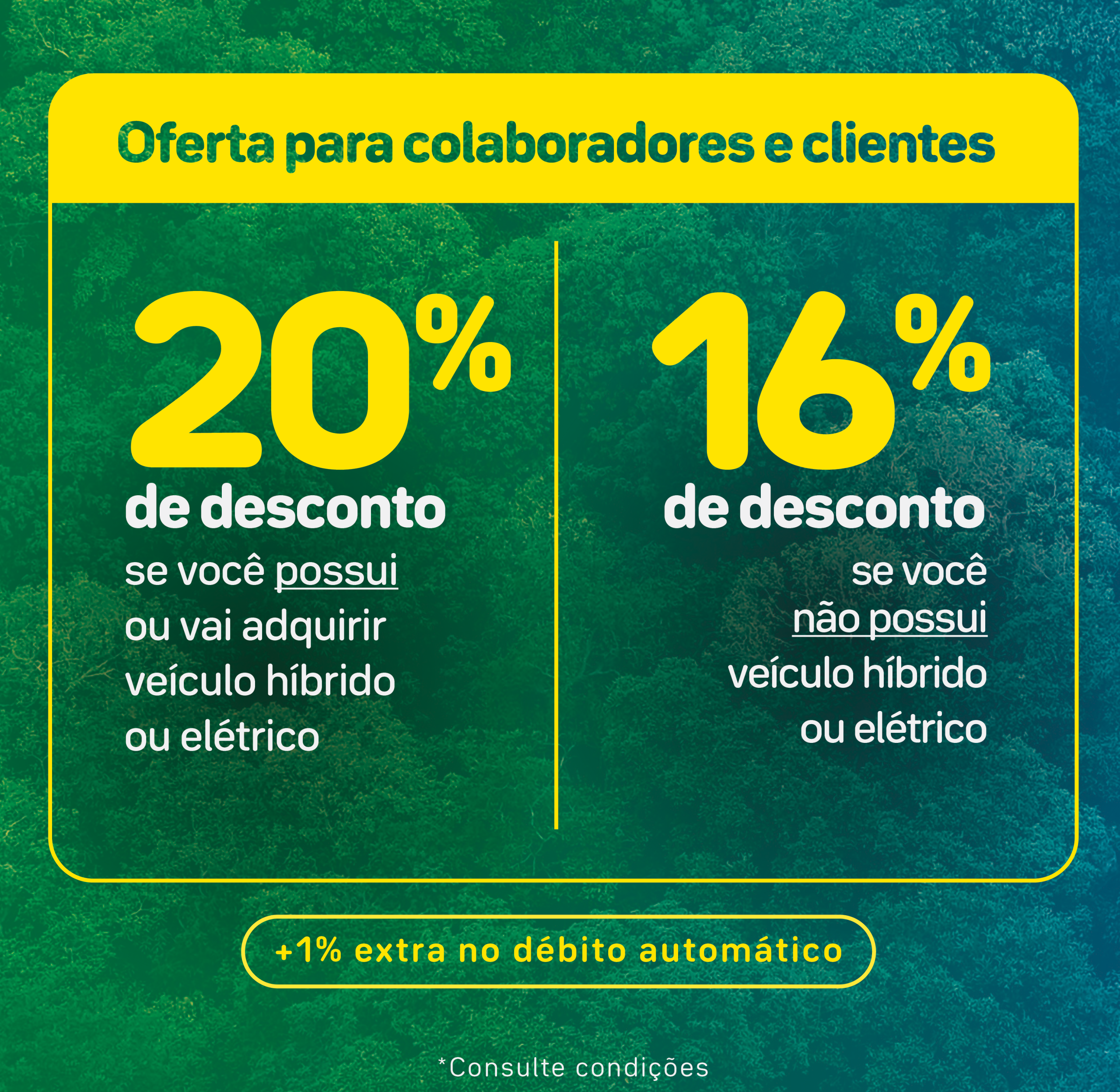 - • 20% de desconto para quem possuir ou adquirir veículo híbrido ou elétrico.